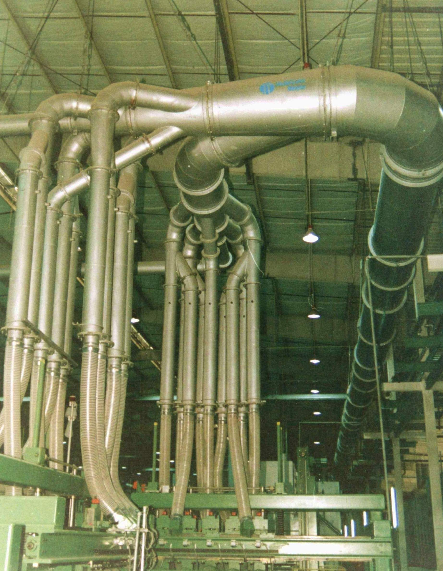 上海阿姆斯壯建材公司珍珠巖粉負(fù)壓氣力輸送系統(tǒng)-耐磨襯膠管道
